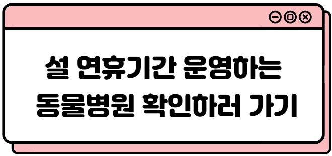 민족 대명절 설이 다가오고 대체휴일까지 하여 연휴는 길어지지만, 사람들도 많이 모여서 혹시나 사고가 나거나, 혼자 남겨 둘 수밖에 없는 상황이 되었을 때, 우리의 아기들이 아프면 혹시나 어쩌나 하는 마음에 항상 가슴 졸이시죠. 빠르게 치료를 받고 싶은데, 연휴기간 동안 운영하는 병원이 있는지, 어디가 운영을 하는지 몰라 걱정하시는 분들을 위하여 설날 동안 운영하는 동물병원 목록을 가져 왔습니다.
