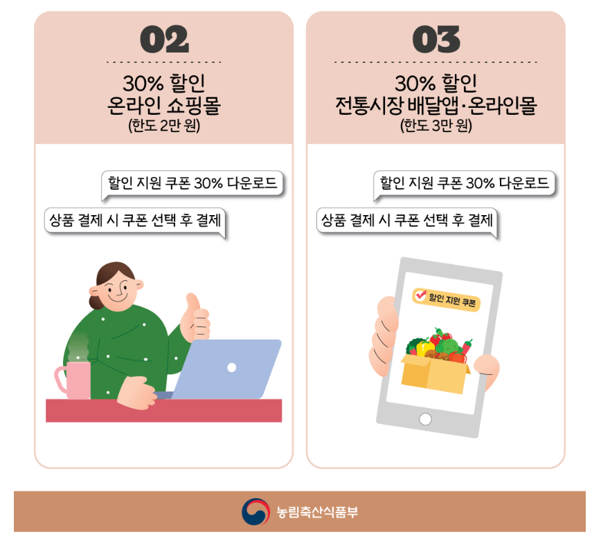 - 앱, 온라인 몰 내 30% 할인 지원쿠폰 다운로드 받기