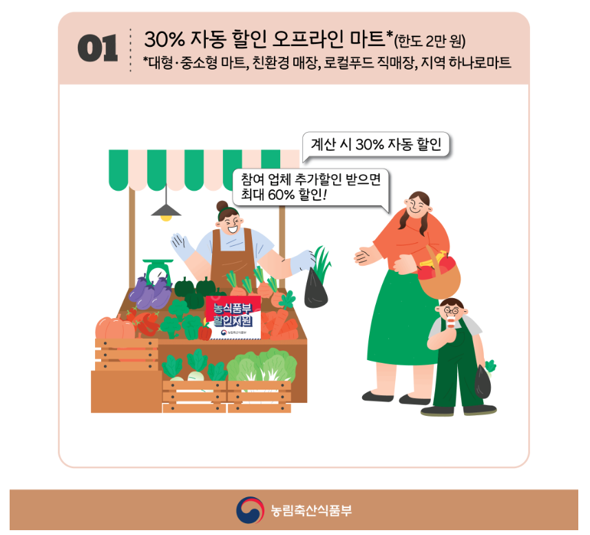 - 오프라인 마트의 경우, 계산할 때 자동으로 할인되니 신경 쓰지 않아도 됩니다.