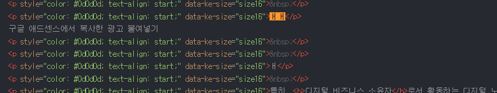 꿀팁!! 글의 편집이 모두 끝난 후 html에서 광고 삽입 후 바로 송출하는 것이 오류 없이 진행할 수 있는 최적의 방법이므로, 글 작성을 모두 끝낸 후 진행하시는것이 좋습니다.
